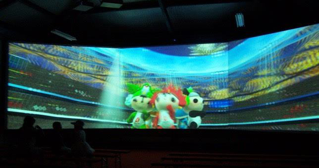 由多塊銀幕組成,通過多臺投影機,采用投影融合技術,創造出超大無縫的逼真畫面。利用電影自身特有的技術優(yōu)勢,使觀眾在高質量的聲畫環(huán)境包圍之中,產生身臨其境的強烈的現場 ……
