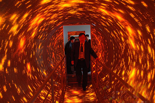 當人沿通道橋步入隧道內,眼睛盯著旋轉的隧道內容,人的行動是受大腦指揮的,而大腦將接受下列信息才能發(fā)出指令:前庭覺將感受人體平衡信息(垂直或傾斜);視覺將感受人處地 ……